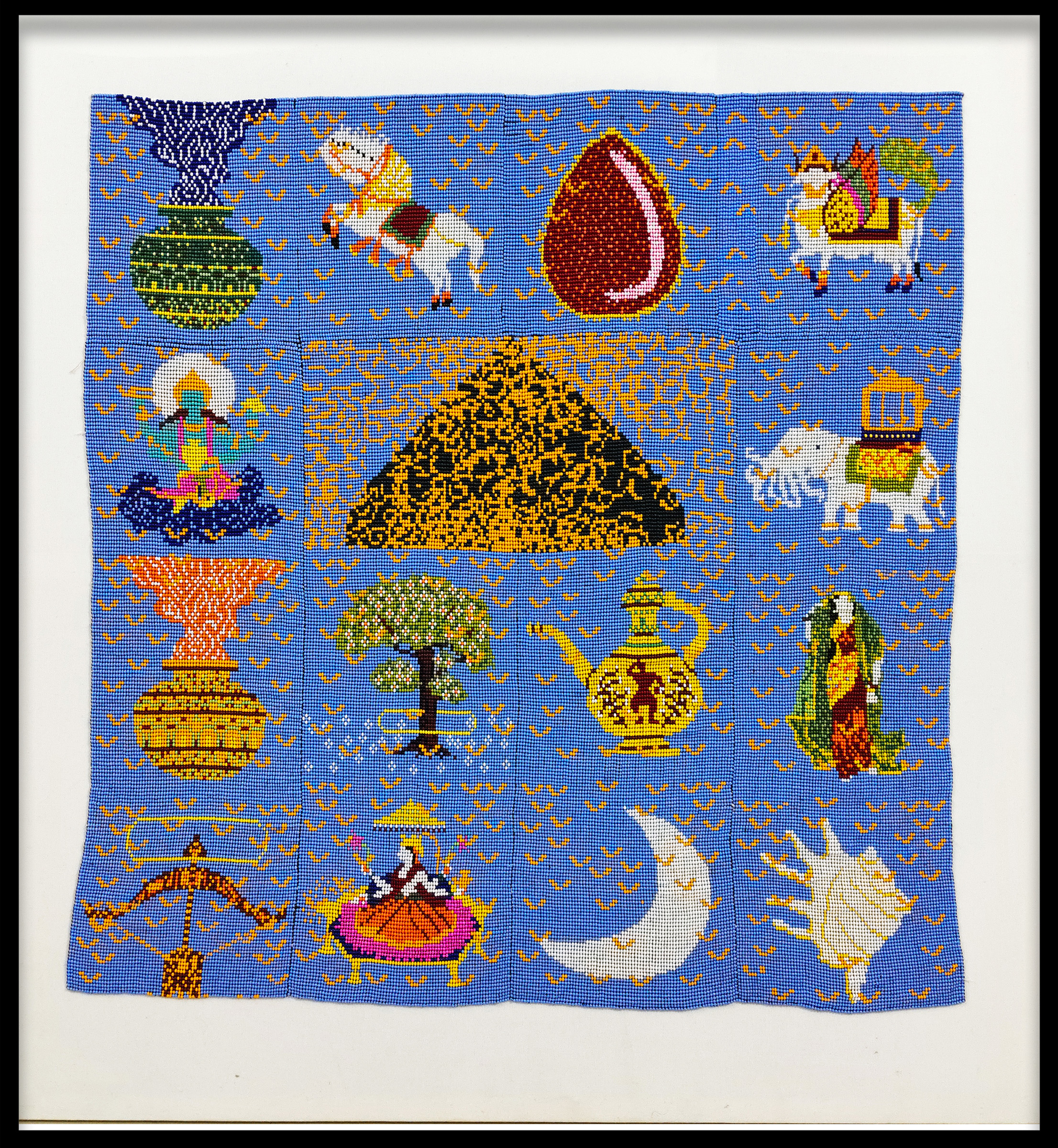 Glass Beads, thread on raw canvas by Hasmukh Makwana