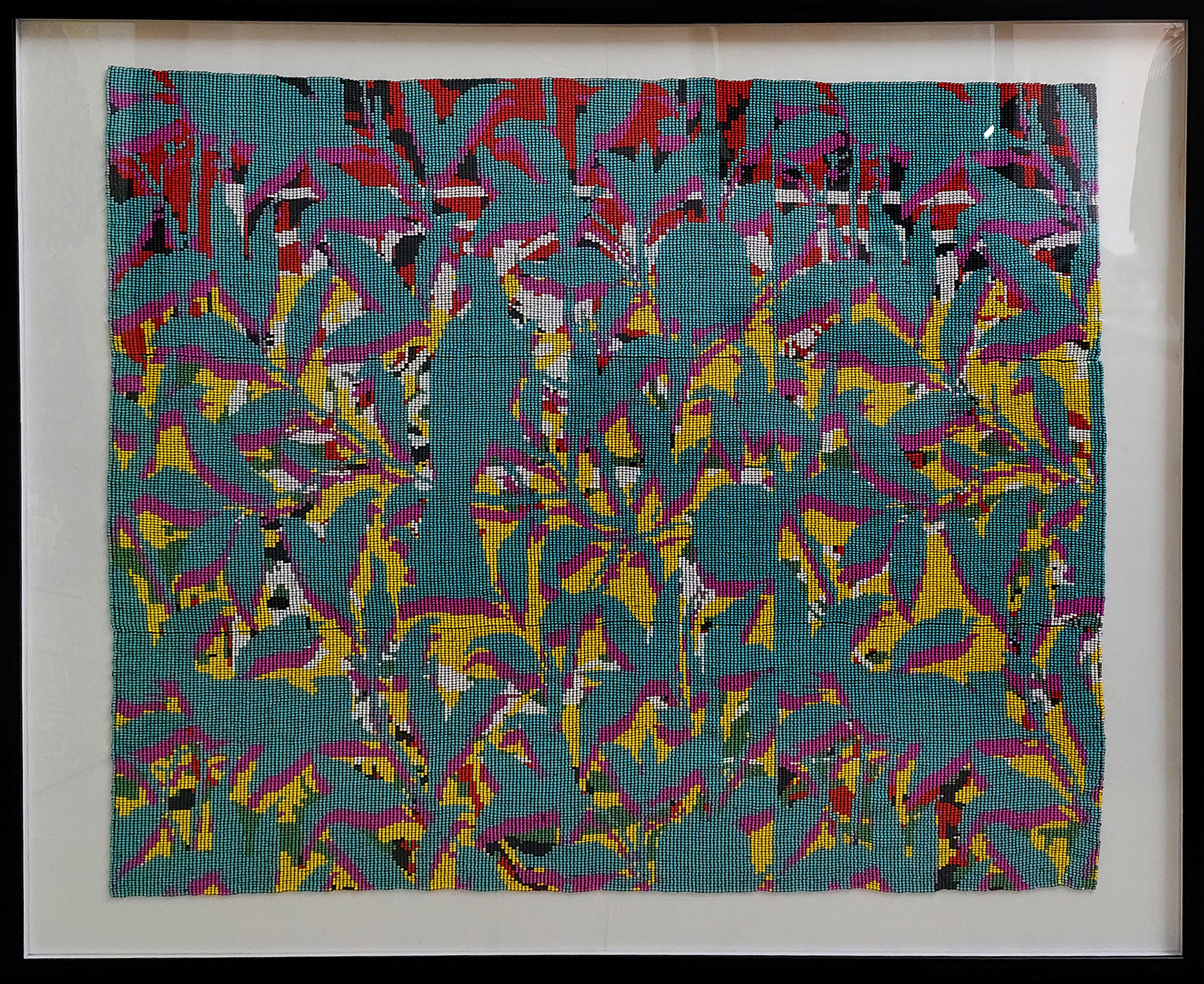 Glass Beads, thread on raw canvas by Hasmukh Makwana