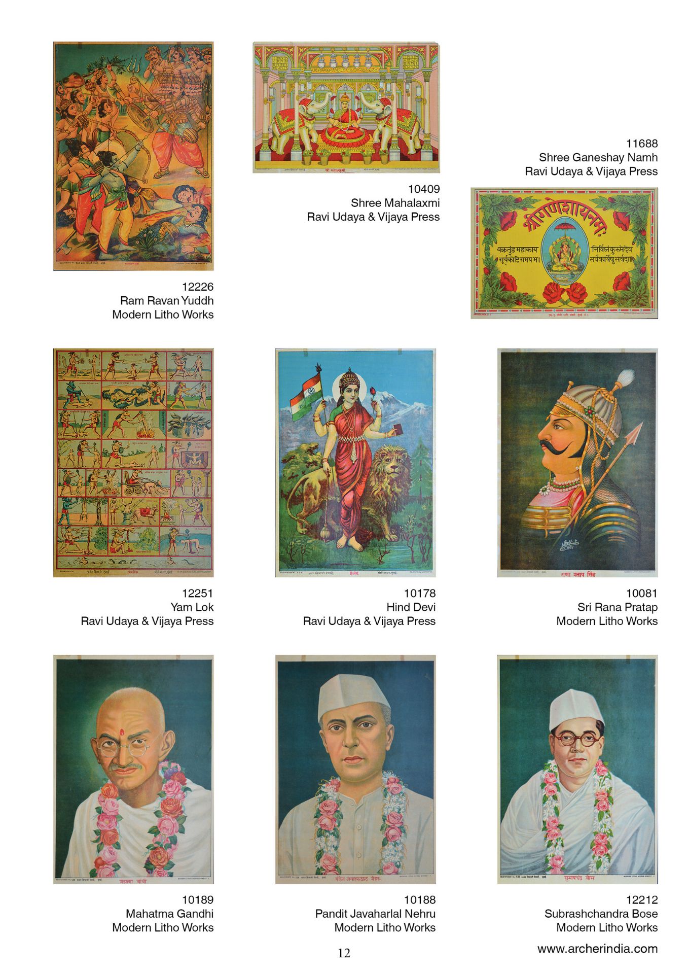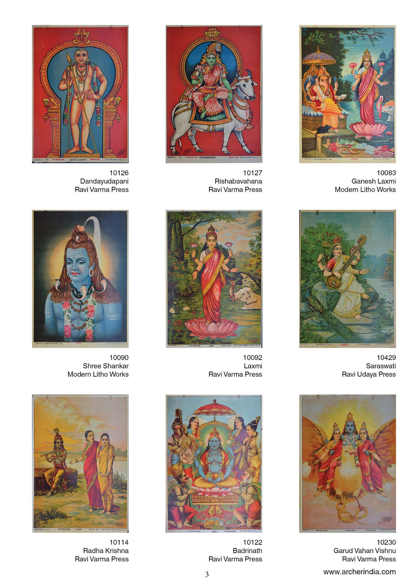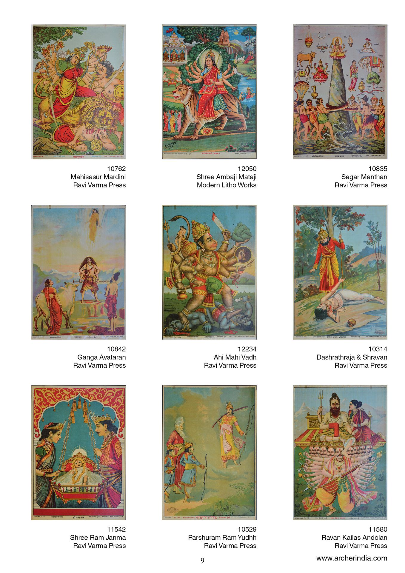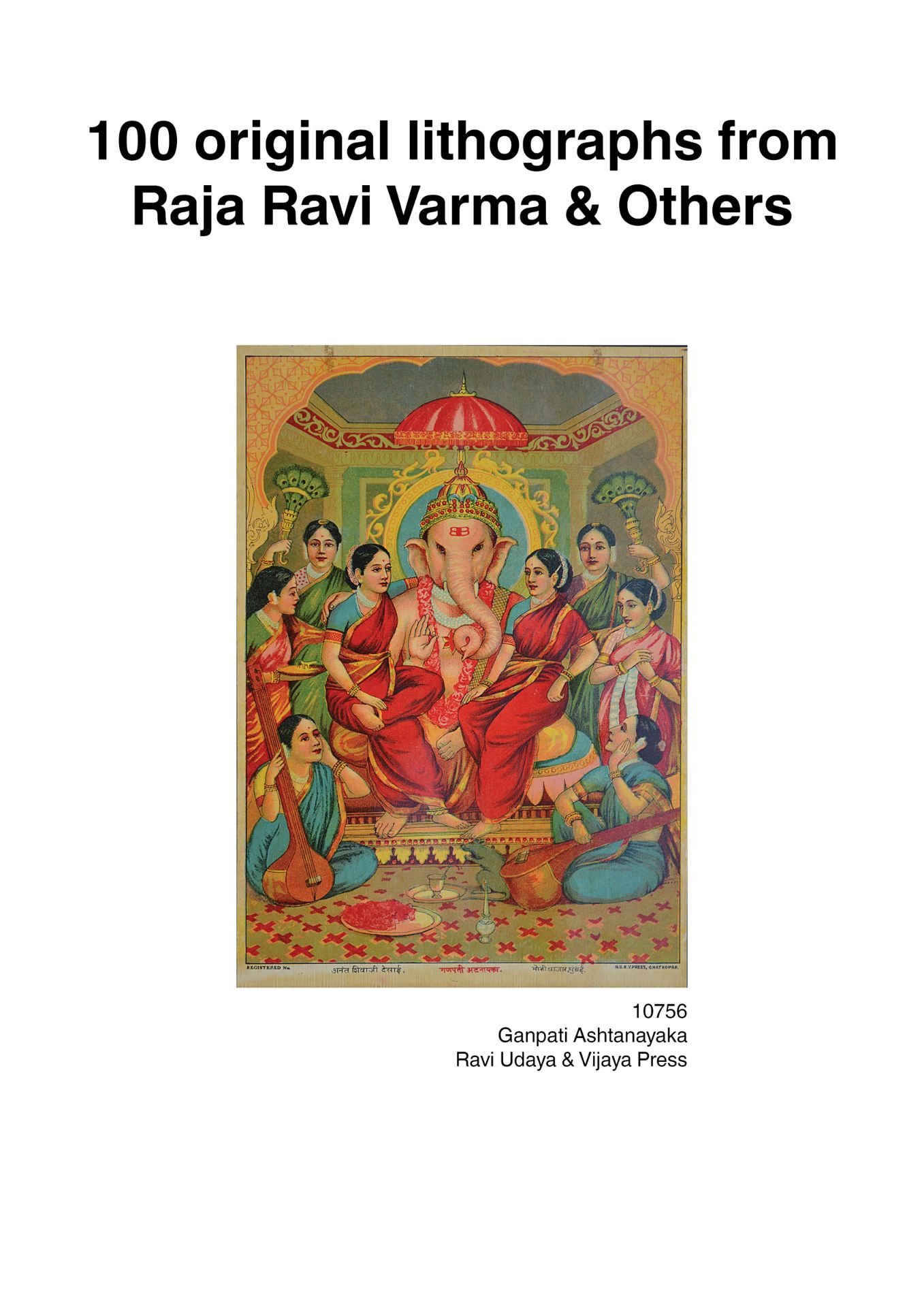 This portfolio is an assortment of 100 early lithographs done at the famous presses such as the Ravi Varma Press, Ravi Udaya-Vijaya press, Ravi Vaibhav Press among others. It contains lithographs in the size 14 x 10 inches, on the subjects Hindu gods and goddesses in scenes adapted mainly from the Mahabharata, the Ramayana and the Puranas.