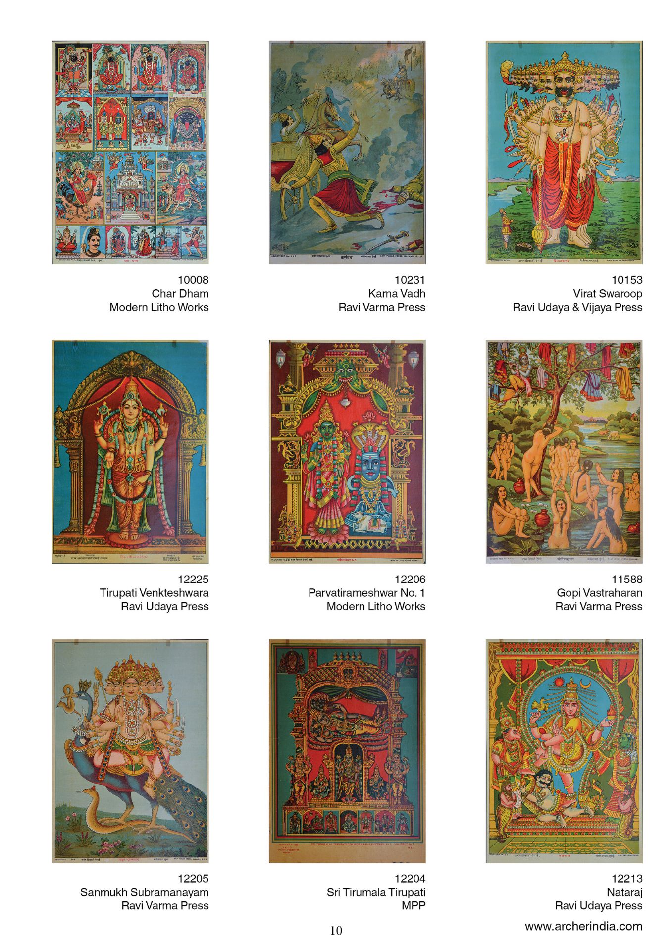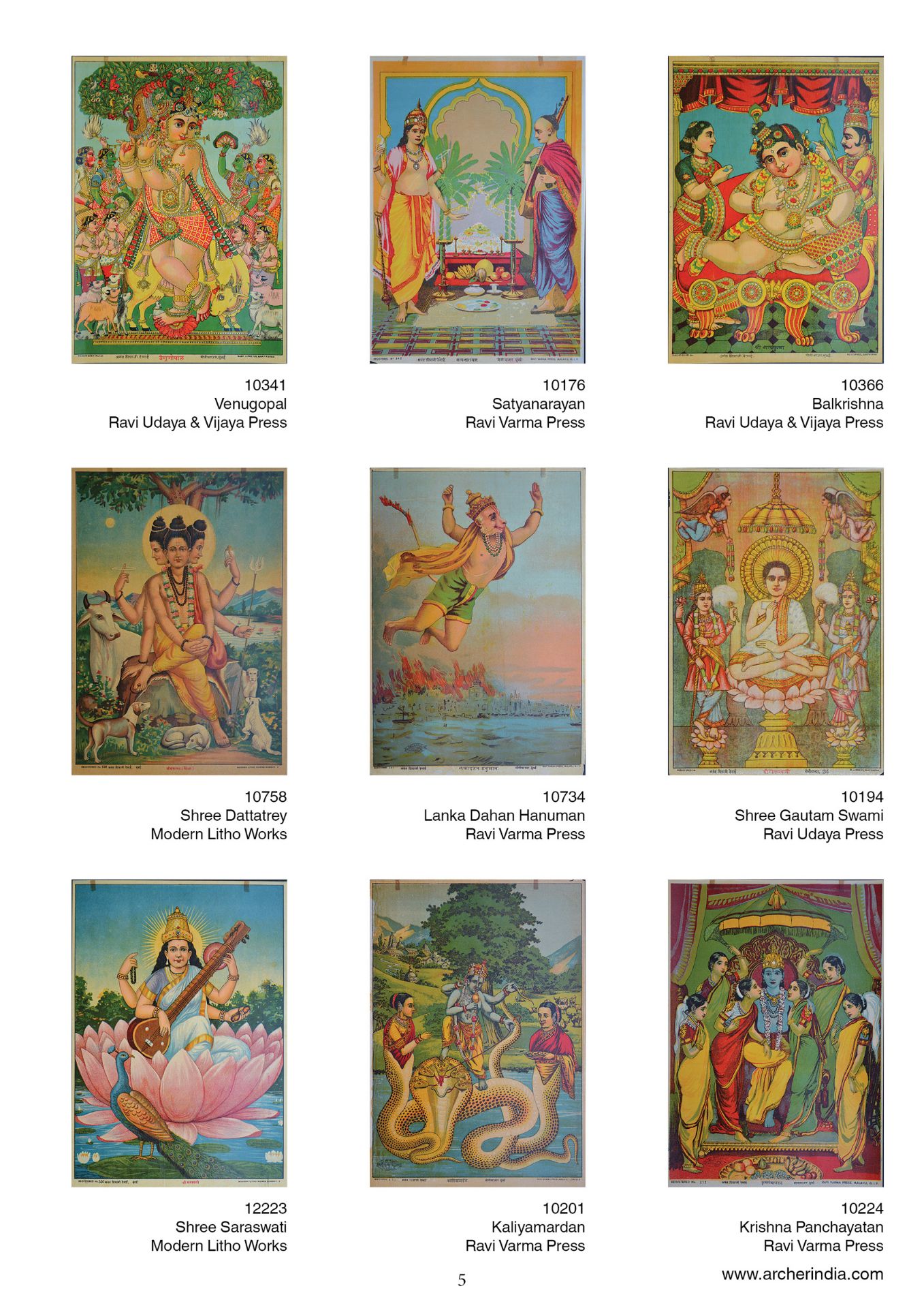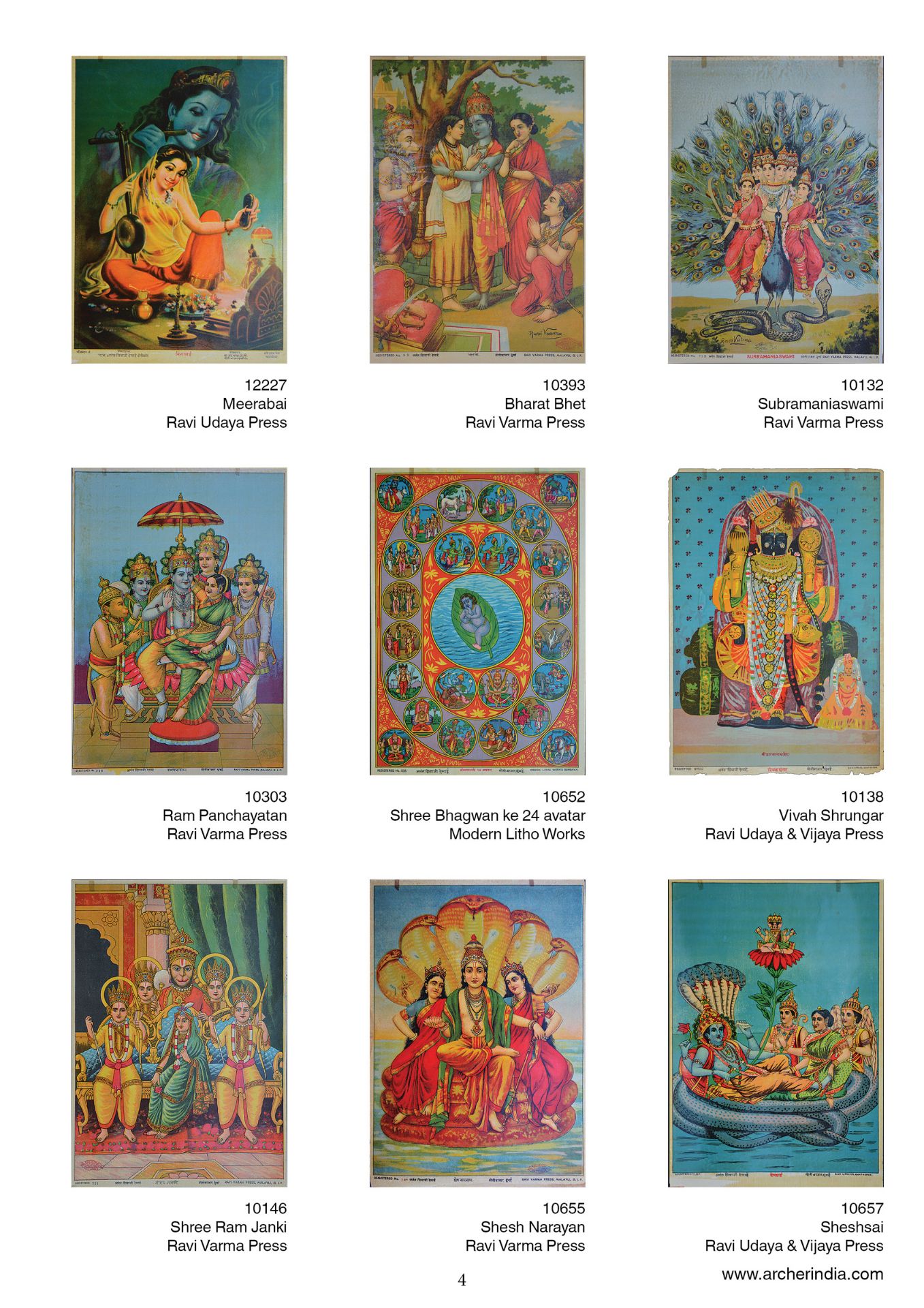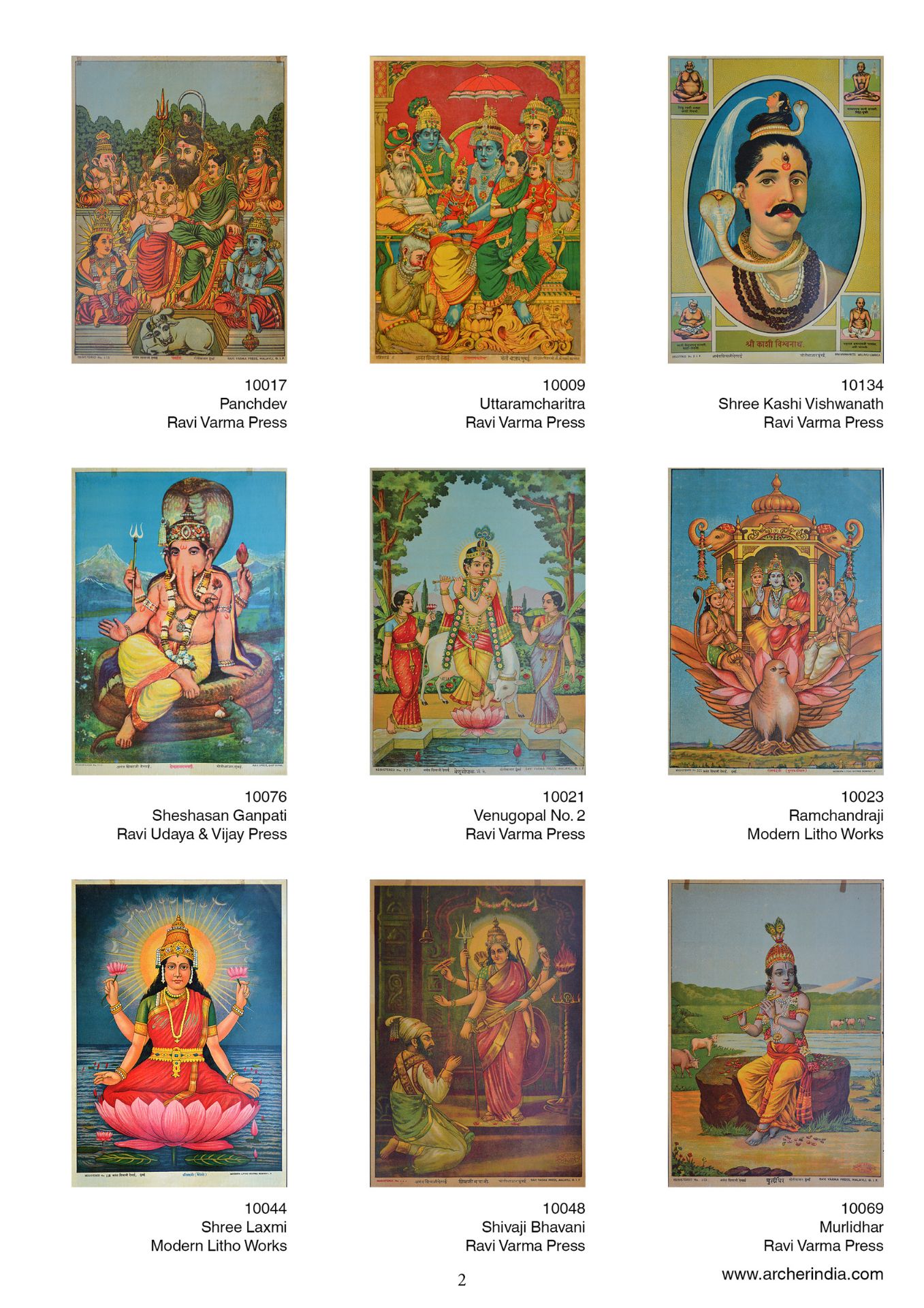 This portfolio is an assortment of 100 early lithographs done at the famous presses such as the Ravi Varma Press, Ravi Udaya-Vijaya press, Ravi Vaibhav Press among others. It contains lithographs in the size 14 x 10 inches, on the subjects Hindu gods and goddesses in scenes adapted mainly from the Mahabharata, the Ramayana and the Puranas.