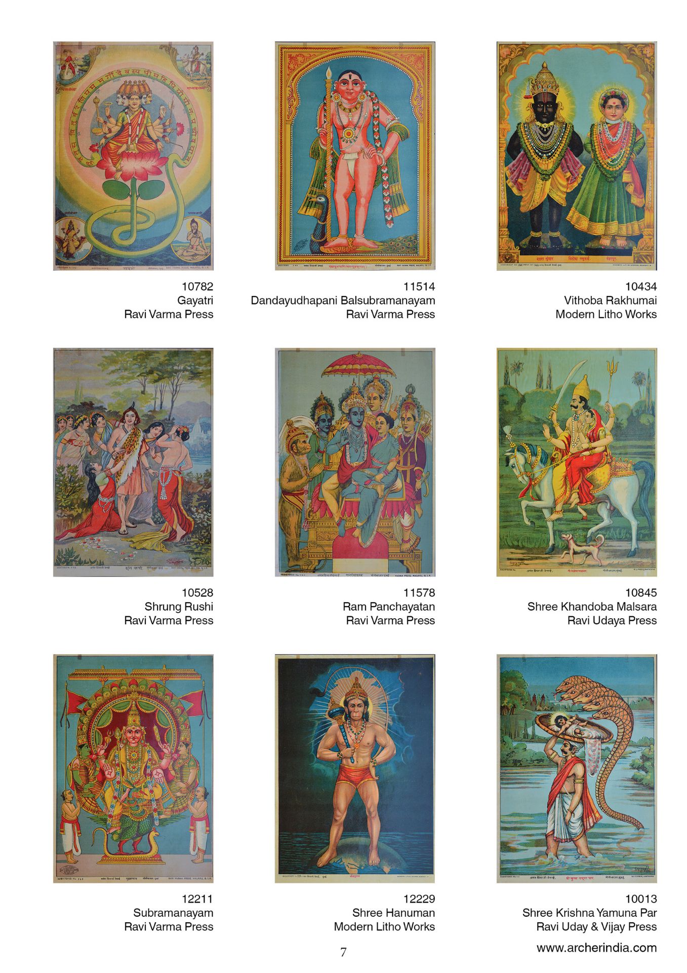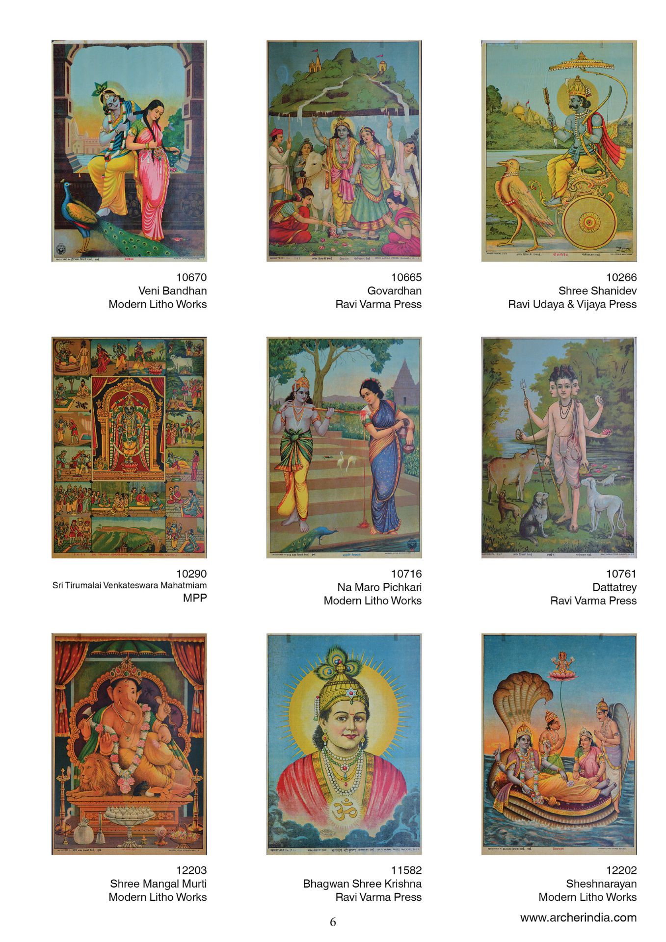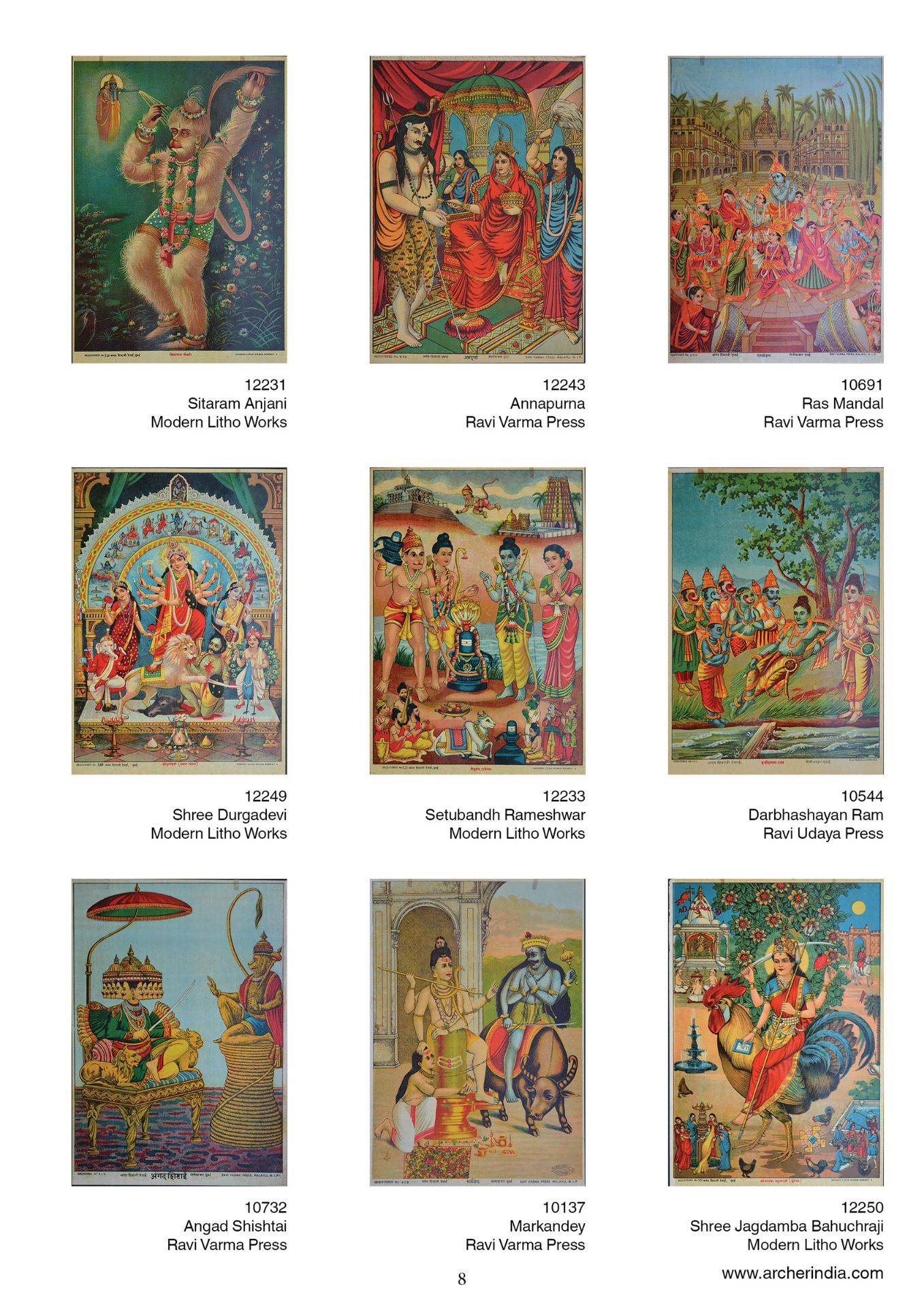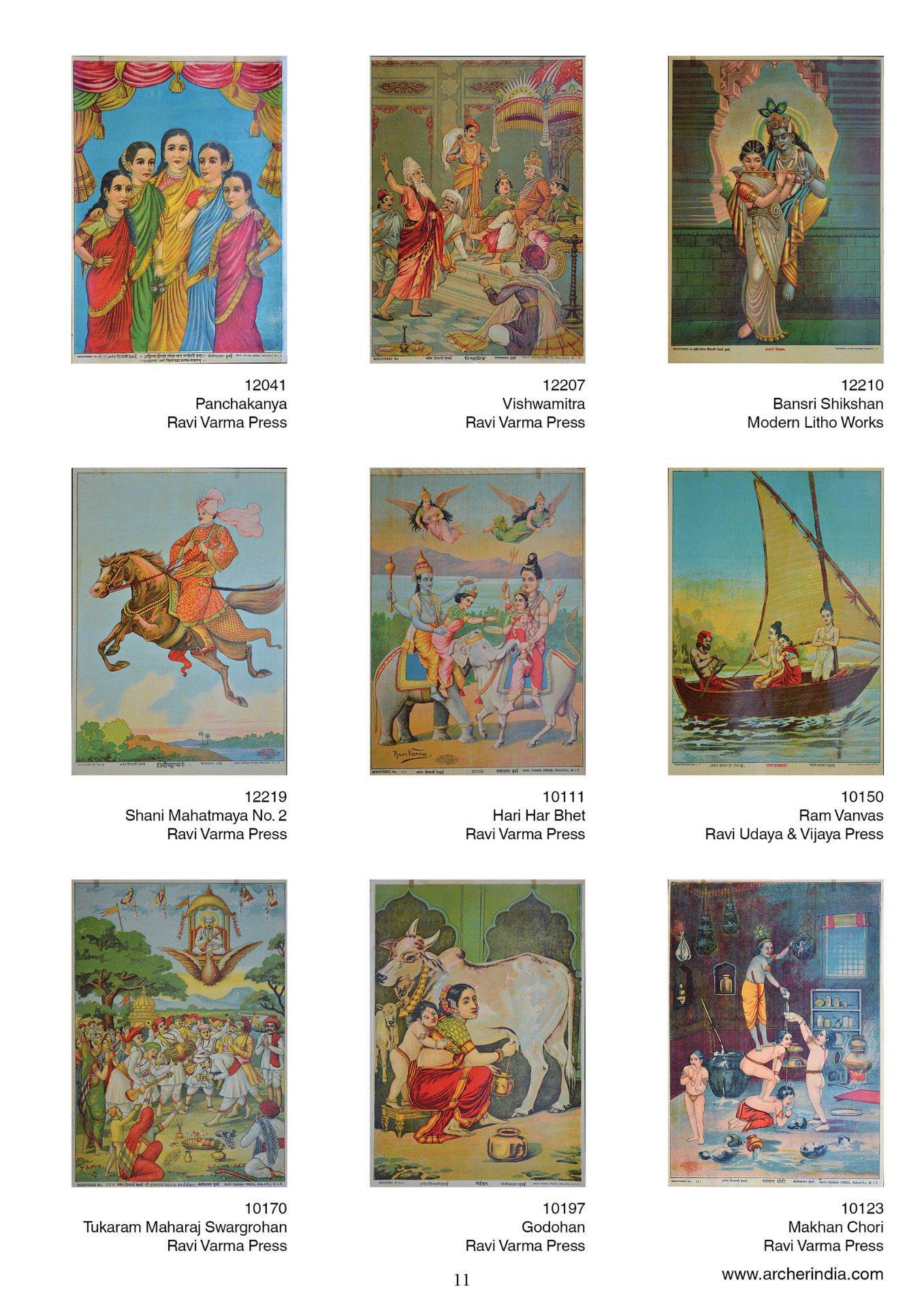 This portfolio is an assortment of 100 early lithographs done at the famous presses such as the Ravi Varma Press, Ravi Udaya-Vijaya press, Ravi Vaibhav Press among others. It contains lithographs in the size 14 x 10 inches, on the subjects Hindu gods and goddesses in scenes adapted mainly from the Mahabharata, the Ramayana and the Puranas.